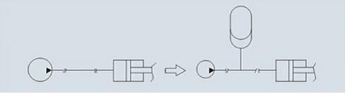 En el circuito hidráulico, el impacto en la tubería causado por un cambio rápido o un cambio repentino de carga produce ruido y da?os en la tubería. El acumulador está configurado para absorber (disminuir) el impacto.